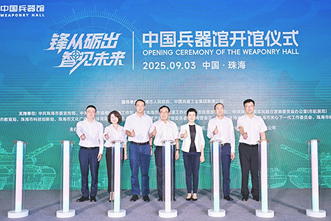 儀式上,珠海市關心下一代工作委員會主任陳英,珠海市政府副秘書長王玲萍,北方國際展覽有限公司總經理楊光輝,珠海市委統戰部副部長鄒煥忠,珠海市委軍民融合辦副主任、市航展局局長蘇全麗,珠海市國資委副主任孫潔峰,珠海格力集團黨委書記、董事長鄒暉共同按下啟動柱,宣佈中國兵器館開館!珠海市關心下一代工作委員會、珠海市科技創新局、珠海市科學技術協會、澳門研學旅行協會分別向中國兵器館授予「珠海市關心下一代研學實踐基地」「珠海市科普教育基地」「澳門青少年國防科普教育基地」牌匾。