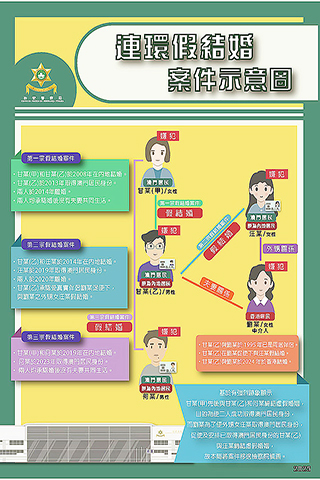 另一方面,甘女離婚五年後,二零一九年與何某「假結婚」,二三年何某取得澳門身份證,兩人婚後無共同生活。何某其後再與另一女子結婚,最終被警方揭發事件。治安警目前正進一步調查該三宗「假結婚」案。◇