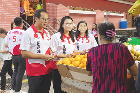 第八屆立法會選舉直選第五組「同心協進會」取得兩席,成功連任的李靜儀、梁孫旭昨日連同同心候選人落區謝票。感謝市民對同心的支持和信任,以及競選團隊的協助,讓他們可以順利連任,承諾推動職工權益增進民生福祉,繼續在議會為居民發聲,會努力爭取更多選民支持,讓市民安居樂業。