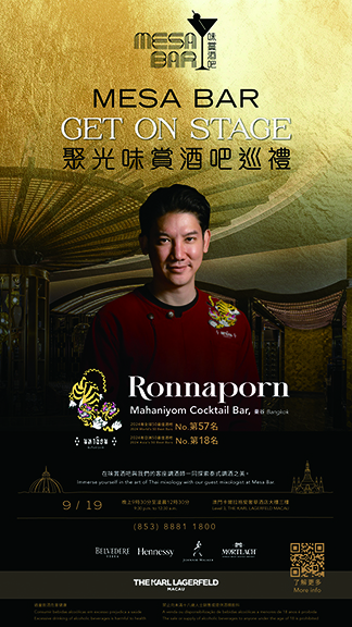 澳娛綜合度假股份有公司(「澳娛綜合」)的「聚光味賞酒吧巡禮」將於9月19日迎來「泰國篇」。來自曼谷Mahaniyom Cocktail Bar的聯合創辦人兼首席調酒師Ronnaporn「Neung」Kanivichaporn將親臨澳門上葡京綜合度假村的味賞酒吧作客座主持。