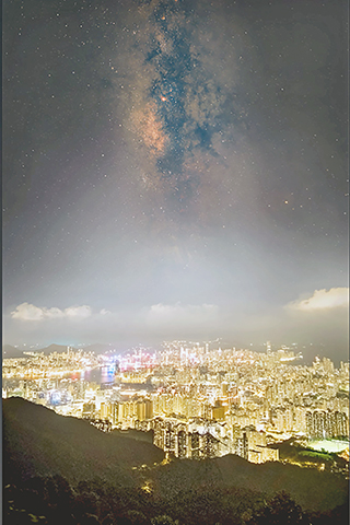 十二月天象 對宇宙是模擬的可能性 物理學家予以排除 彗星「檸檬」的飄逸尾巴 超級月華 立冬後最亮的星雲和雙星團 今年最大滿月 哈伯望遠鏡拍攝的 木星紫外光影像 太陽黑子 飛鵝山銀河 2025-10-27 03:30:00 今年香港好像整個夏季天氣都不怎麼好,九月中回港看到藍藍的天,而且晚上近十時才月出,於是飯後就立即開車上飛鵝山拍城市銀河,說起來已經是自二零一三年開始,連續第十二個年頭在香港拍攝城市銀河了。 不動明王(全職星空攝影師 . Vincent Cheng)◇