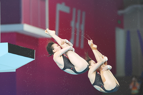 【中新社廣州11月6日電】(記者程景偉)第十五屆全國運動會跳水項目女子雙人10米跳台決賽6日晚在廣東奧林匹克體育中心舉行,上海隊組合陳芋汐/掌敏潔最終奪冠。