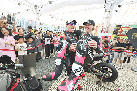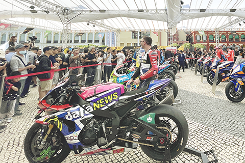 【專訪】第七十二屆澳門格蘭披治大賽車開幕儀式及車展昨日在塔石廣場舉行,吸引不少居民及旅客參觀。隨著多名電單車車手亮相互動,氣氛更推熱烈。