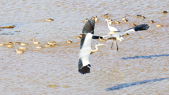 與鄱陽湖僅一壩之隔的南昌市五星白鶴保護小區也迎來候鳥「越冬季」,該片區本年度第二次越冬水鳥同步調查結果顯示,與10月相比,五星片區候鳥種群數量與種類實現雙增長。◇(中新社)
