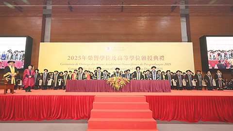 【特訊】澳門大學昨日舉行榮譽學位及高等學位頒授典禮,向逾二千二百名博士、碩士等應屆畢業生頒授證書,並向兩名在材料科學、經濟學領域有卓越成就和貢獻的學者頒授榮譽博士學位。