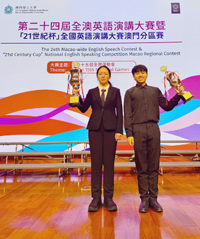 【特訊】澳門大學英語演講隊於第二十四屆全澳英語演講大賽暨「二十一世紀杯」全國英語演講大賽澳門分區賽決賽中,憑藉出色的演講技巧與優秀的講辭設計,獲得大學組的冠軍和亞軍殊榮。