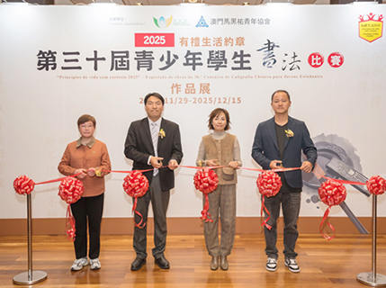 【特訊】由市政署與澳門馬黑祐青年協會合辦的「二零二五『有禮生活約章』第三十屆青少年學生書法比賽作品展」日前於盧廉若公園春草堂舉行開幕儀式,展出共一百一十五幅獲獎學生作品,展期至十二月十五日,歡迎市民到場參觀,欣賞書法藝術的同時,加深對有禮生活的體會。