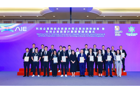 【特訊】由經濟及科技發展局(下稱「經科局」)和科學技術發展基金(下稱「科技基金」)主辦的「科技企業與綜合旅遊休閒企業洽談對接會暨科技企業認證計劃證書頒授儀式」(下稱「對接會」)昨(五)日假澳門威尼斯人舉行,是今年「全球智能機械與電子產品博覽會」(下稱「AIE」)的系列活動之一。經科局代局長鄭曉敏、科技基金行政委員會委員鄭冠偉、六間綜合旅遊休閒企業代表、獲頒授《科技企業認證計劃》認證證書的科技企業,以及AIE「澳門創科館」參展企業代表等逾一百人出席。