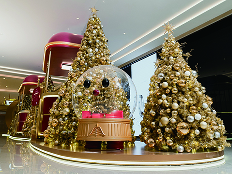 翡翠大堂的中心裝置將閃耀聖誕樹與晶水晶球融合,化身迷人節慶標誌。裝置定時綻放光影盛宴,伴隨歡欣聖誕樂曲。