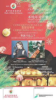 將打造三個不同特色商圈帶動片區經濟可持續發展 「片區發展中心」正式啟動 進一步提升銀行卡網上交易安全性 金管局要求銀行推出新功能 警惕冒認「檢察官」電信詐騙 《第一批動產的評定》行政法規公佈 澳博館四百項館藏列被評定的動產 政府長者公寓使用費優惠 延續至明年年底 「文明互鑒國際論壇」今澳門揭幕 匯聚全球智慧促國際人文交流 廣告法案建議放寬審批要求 二常會關注監管處罰機制 首11個月全澳135宗需開喉撲救火警中 近八成因有人留下火種 本澳海關在關閘口岸 截獲七宗不法販運個案 「澳門特區公報」內容簡介 撞到一部私家車 男醉駕單車被拘 澳男遭「公檢法」電話詐騙 失逾十九萬元全部積蓄 視藝教師協陶塑展明揭幕 仁協之友「澳門經濟多元展望」座談有表示 創新產業會為澳帶來新契機 AIAT國際航空比賽 即起接受報名 設禮品及食品攤檔同時有旋轉木馬與表演等供闔家參與 塔石聖誕市集今起連辦17日 三天活動吸引逾四萬八千市民與遊客參與 「齊齊葡」穗站銷量勝預期 學費膳食及用品津助有條件名單完成評審 大專獎助學金申請結果公佈 多處因應工程交管 善舉開展一個月獲博企國企公私人單位紛支持 同善堂「沿捐」籌得逾一千萬 至本月杪續收捐款以協助海內外有需要家庭 明愛舉行「聖誕送暖童歡樂」 科技園第二場公眾意見收集會 聽取三百五十人意見 「聖誕音樂會」本周五舉行 電子公文跨境交換 琴澳行政局簽署 市署禁法國疫區禽肉入澳 「澳大雙創展」展出近百個孵化項目 為科研轉化為產業注新動能 何敬麟表示「片區發展中心」定能推動各界積極參與 邱潤華:仍收集「消費獎賞」意見 法務局續增電子登記服務 物業登記船舶登記等 勞工局與工聯辦餐飲業配對會 60職位今起網上報名 第三階段「淘汰老舊柴油車資助計劃」推出明年一月五日起接受申請 將值習近平總書記考察橫琴深合區一周年 拱關將寄語落至實處 深合區首11月進出口貨值增逾七成五 「聖誕音樂會」本周五舉行 2025-12-16 03:30:00 【特訊】澳門陸軍俱樂部活動「音樂里程-本地年青音樂人」將於本月十九日(星期五)下午七時在何鴻燊博士廳舉行。 音樂會主題為「聖誕音樂會-聖誕月色之下」,邱卓妍(女聲歌手、鋼琴)及蕭偉中(大提琴、和音歌手)。 音樂會的觀眾上限為六十人。 音樂會結束後,賓客可參加為此音樂會特設的晚宴,訂座上限為五十人。 訂座或購票詳情,可致電二八七一.四000。◇