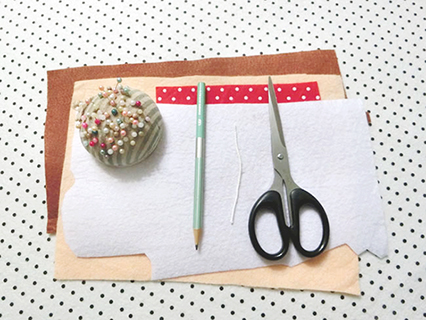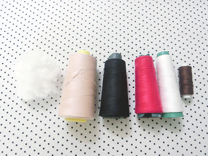 (4)黑色、紅色、白色、啡色、杏色線卷各一個,白色絨布一塊,手針一支,剪刀一把,珠針一盒,棉花少許,鉛筆一枝,白色幼棉繩一條。
