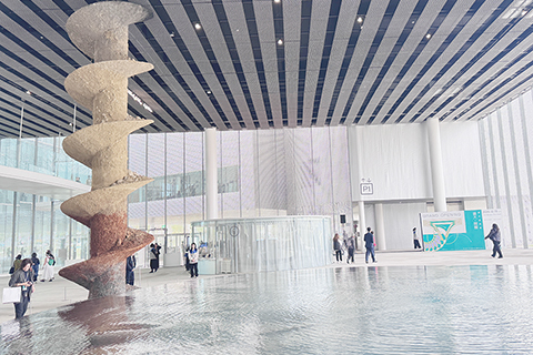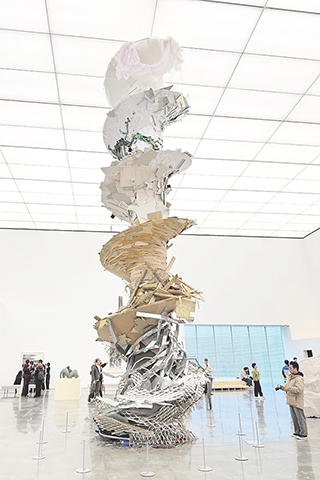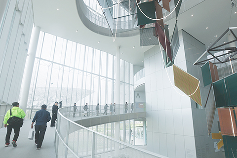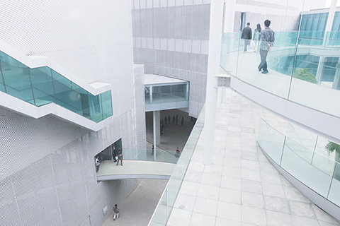 全台首座結合美術館與圖書館的複合式建築台中「綠美圖」十二月十三日正式開幕,該建築由日本建築師團隊SANAA領軍設計,結合台灣建築團隊的在地專業共同完成整體規劃,以玻璃帷幕為主體,配搭鋼構與鋁合金支撐的屋頂系統,不僅具備優雅的現代感,同時兼顧結構安全,大量自然採光充盈室內空間,建築內部充份融入綠建築概念。圖書館部份採分齡、分棟設計,為兒童、青少年及樂齡者分別規劃獨立空間,預計將擁有超過五十萬册的圖書與電子書資源。美術館展覽區則將展出當代藝術、設計與攝影作品,並導入數碼互動展覽模式。(香港中通社圖片)