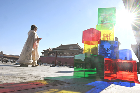 「恐龍大復活」登場 福建永泰:青梅綻放引客來 台灣青年媒體人翟翾 三代接力續寫兩岸情緣 在故宮「聽色彩講故事」 2026-01-11 03:30:00 十二月三十日,「來!聽色彩講故事」教育體驗展在北京故宮博物院開幕。展覽以「三原色」體系為科學和美學支點,衍生出「彩、紅、黃、藍、綠、白」六個主題單元,將故宮的平安守護、匠心傳承、交流互鑒與可持續發展理念,轉化為可感知、可互動、可探索的沉浸式體驗。(新華社記者金良快 攝)