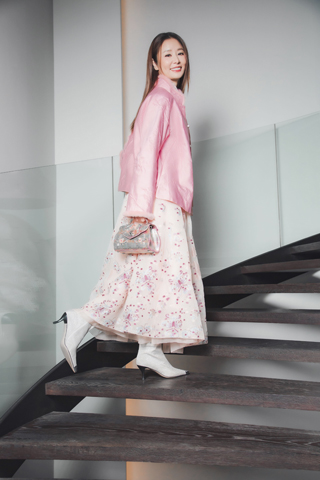 訪談影片中,林心如身著SHIATZY CHEN 2026新年限定粉色緹花棉襖背心,以中式線裝書為靈感,貂毛立領與玉石釦點綴光影。也同時示範棉襖系列外套款,搭配開版緹花粉色長裙,優雅呈現節慶氛圍。◇