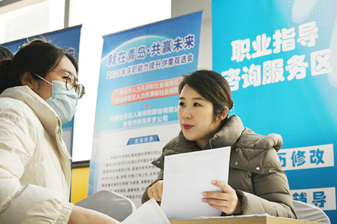 ◎ 一月三十日,在青島西海岸新區人力資源大市場就業指導諮詢服務區,工作人員為求職者答疑解惑。近日,山東省青島市陸續開展多場「青雁歸巢」專場招聘會,全市各級人社部門針對大學生就業舉辦形式多樣、精準高效的招聘推介活動,為青年學子與用人單位搭建起對接交流的平台。據悉,青島自二0二二年開始,持續舉辦「青雁歸巢」系列活動,為青島籍大學生或駐青高校大學生提供就業、實習等各種人才服務,吸引並幫助大學生畢業後在青島就業、創業。(新華社記者 李紫恆 攝)