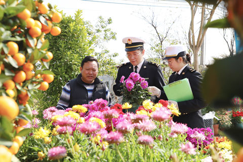 為滿足澳門年花市場需求,保障節日期間供澳年花通關安全順暢,中山海關提前主動對接轄區主要花卉出口企業,了解出口計劃與通關需求,設立供澳年花「綠色通道」,提供「七×二十四小時」預約查檢服務,實現「隨報隨到、快速驗放」。