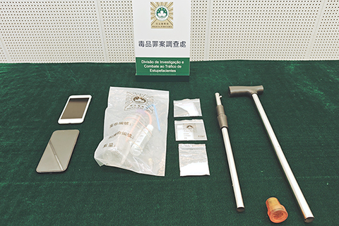 經調查發現,何某除吸毒外,過去最少一個月在本澳販毒圖利。司警表示,今次是本澳首次發現有人以拐杖藏毒。◇