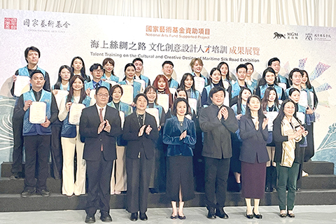 【專訪】由美高梅主辦的國家藝術基金二0二五年度藝術人才資助項目「海上絲綢之路文化創意設計人才培訓」成果展,昨日上午十一時半假澳門媽閣塘片區(原媽閣屠房舊址)揭幕,展期至三月八日。