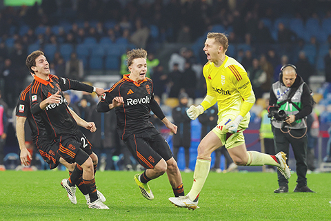意盃前四有科木 2026-02-12 03:30:00 【特訊】意大利盃8強賽,科木互射12碼,昨晨作客淘汰六屆盟主拿玻里,40年來首度晉級4強。 科木上半場由巴圖里拿射入12碼,打破僵局。換邊後1分鐘,拿玻里由華加拿扳平,法定90分鐘兩隊賽和1:1,要互射12碼分勝負。經過8輪,拿玻里有盧卡古同盧保卡射失,科木只有一名球員不入,最終科木在12碼贏7:6,4強將與國際米蘭踢主客兩回合,爭奪決賽權。◇