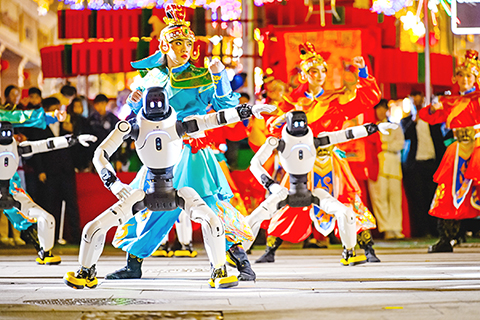 兩岸數智非遺主題秀「科技藝陣」2月18日晚在中山路完成首秀,成為該活動的核心亮點。現場,打鼓機器人與台灣鼓手合作完成「藝陣雄風」鼓樂表演,武陣機器人與百人方陣共演宋江陣……獨特的演出形式吸引大量市民遊客駐足圍觀。