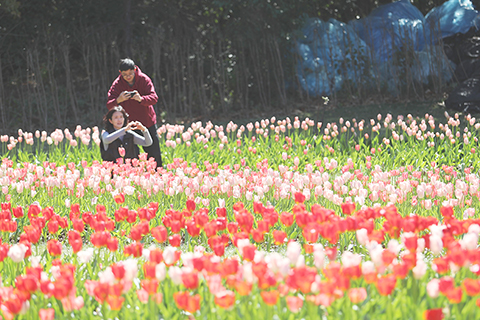 雲南永仁方山百花爭艶遊人如織 2026-02-21 03:30:00 ◎ 二月二十日,兩名遊客在郁金香花海中打卡。近日,雲南省楚雄彝族自治州永仁縣方山一帶的郁金香、櫻桃花、櫻花等爭相綻放,吸引遊客前來賞花。(中新社記者 黃興鴻 攝)