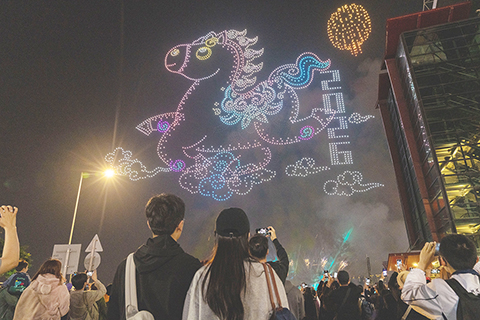 首度推出的「金駿雲翔歡樂春節」二0二六無人機煙花匯演同日晚上於旅遊塔對出海面上演,採用三千八百八十八架無人機結合煙花、音樂與雷射效果,約十五分鐘的演出以生肖馬與新春祝福為主題,融合創新科技與傳統節慶元素,增強演出的層次感與觀賞性,豐富節慶體驗。第二及第三場無人機煙花匯演場次將於年初七(二月二十三日)及正月十五(三月三日)晚上九時再度上演。