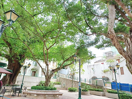 亞婆井前地令人喜歡的是那種幽雅閑静的感覺,是有賴於亞婆井前地的兩棵老榕樹,它們為居民遮風擋雨,巨大的樹冠為居民擋住炎熱的陽光。