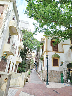 亞婆井前地的兩三層高的葡式住宅歷史悠久,外牆均刷上黃色並配上白色線條,採用平屋頂磚混結構,而在龍頭里的葡式建築物比較低矮,但採用明亮的白色的外牆,紅色瓦頂和綠色的百葉窗,順山勢而建,充滿了濃郁的南歐風情,又是另一番神韻。