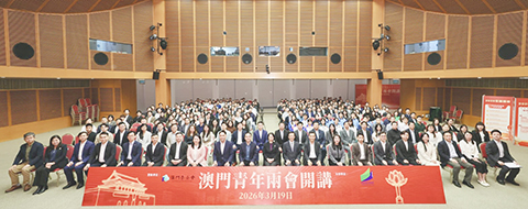 本澳一百四十二個青年社團昨晚八時十五分假澳門科學館會議廳合辦「二0二六澳門青年兩會開講」活動,邀請澳區全國人大代表團團長劉藝良,全國政協澳區委員羅奕龍、黃潔貞、賀凱琪擔任主講嘉賓,吸引逾三百名青年參與,共推動澳門青年學習貫徹全國「兩會」精神。◇