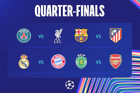 【特訊】歐冠8強產生;西甲有3隊,包括皇家馬德里、巴塞及馬德里體育會;英超2隊,是利物浦及阿仙奴。德甲、法甲及葡超各1隊,包括拜仁慕尼黑、上屆盟主巴黎聖日門及士砵亭。