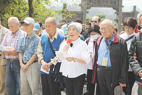 台北春祭白色恐怖受難者籲銘記歷史傳承先烈精神 2026-03-25 03:30:00 ◎ 三月二十四日,台灣地區政治受難人互助會在台北六張犁墓區舉辦春祭追思活動,來自全台各地的白色恐怖受難人家屬和各界代表約五十人唱起《安息歌》,寄託對先烈的哀思。圖為台灣地區政治受難人互助會總會長李素慧(前排右二)宣讀祭文。(中新社記者 劉大煒 攝)