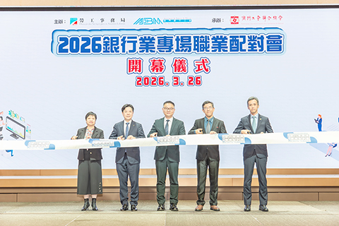 澳門銀行公會主席葉兆佳在致辭中表示,澳門銀行公會重視本澳人才培育,積極配合特區政府政策,協助銀行業把握發展機遇並應對挑戰,致力於推動現代金融發展與經濟多元化。澳門銀行公會多年來為青年提供職涯指導、實習及就業機會,並連續六年與勞工局合作推出「職出前程實習計劃」。此外,亦透過舉辦招聘會、銀行業體驗計劃、定向人才培養項目及專業培訓課程,協助青年深入了解行業並建立專業能力;同時通過舉辦「2026銀行業專場職業配對會」,切實助力本澳畢業生就業,期望為澳門青年投身金融界搭建舞台。