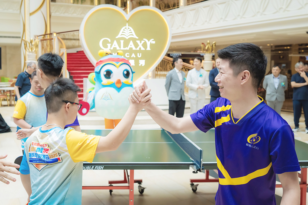 【特訊】銀河娛樂集團(下稱「銀娛」)自2011年起,與澳門特殊奧運會(下稱「特奧會」)合辦「銀娛關愛特奧共融乒乓球同樂日」,推廣共融文化。今年適逢「2026年澳門國際乒聯男子及女子世界盃—由銀河娛樂集團呈獻」(「國際乒聯男女子世界盃」)於3月30日至4月5日在銀河綜藝館盛大舉行,在國際乒乓球聯合會(下稱「國際乒聯」)的支持下,銀娛與特奧會昨日舉辦「慶祝國際乒聯百年・銀娛關愛特奧乒乓球同樂日2026」(下稱「同樂日」),吸引近千名參加者踴躍參與。為進一步提升賽事的熾熱氛圍,活動前期亦走訪多家本地學校舉辦共融工作坊,加深青少年對共融理念的認識。