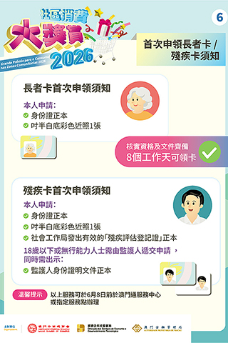 經科局於講解會上介紹是次活動兩項重點優化措施及安排,包括:(一)活動調整為「周末抽券、平日核銷」的模式,即於每周五至周日抽取電子優惠獎,並在周一至周四核銷電子優惠;(二)持殘評證人士改為以「澳門通殘疾卡」領取額外的500澳門元消費立減優惠,無須再額外領取關愛卡;同時,長者及持殘評證人士均可憑有效澳門通「長者卡」或「殘疾卡」,於本澳逾100個指定服務地點拍卡領取上述額外優惠,務求便利合資格人士參與及受惠。