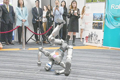 ◎ 四月一日,香港貿易發展局舉行新聞發佈會,介紹即將舉行的四大科技展,包括第四屆香港國際創科展、第廿二屆香港春季電子產品展、第十七屆香港國際春季燈飾展和第三屆智慧照明博覽。四大科技展將匯聚來自廿八個國家和地區的超過三千七百家展商。其中,香港國際創科展、香港春季電子產品展將設置「RoboPark」機器人展區,展示超過一百個應用於不同場景的機器人。圖為機器人表演。(中新社記者 陳永諾 攝)