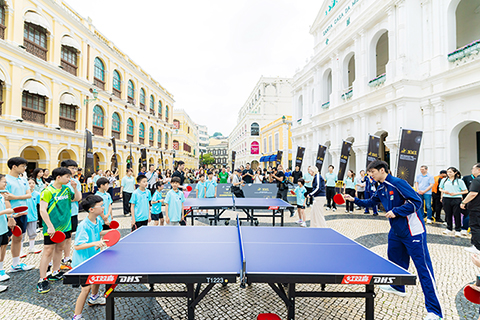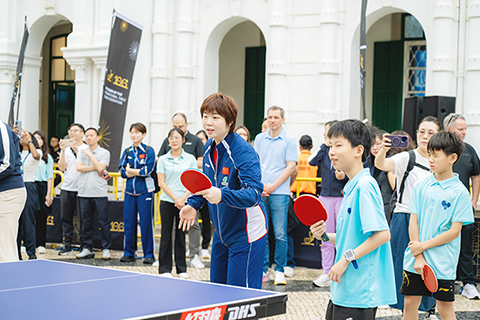 慶祝儀式4日上午議事亭前地舉行,邀請國際乒聯及中國乒乓球協會代表,以及中國乒乓球隊球員蒯曼、薛飛和中國澳門球手梁安娜,與澳門青少年乒乓球學校學員進行互動交流。出席儀式的嘉賓包括:國際奧委會委員、國際乒聯主席佩特拉·索林(Petra Sorling);國際奧委會委員邁克爾·姆龍茲(Michael Mronz);澳門體育局代局長李詩靈;中國乒乓球協會主席王勵勤;銀河娛樂集團企業事務董事林志成;國際乒聯副主席沈偉妮(Virginia Sung);世界乒乓球職業大聯盟首席執行官史蒂夫·丹頓(Steve Dainton);世界乒乓球管理集團副總裁陳欣;澳門乒乓球總會理事長許江雄。