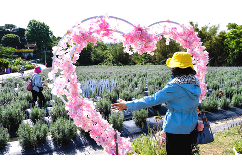 台灣苗栗縣葛瑞絲香草田這裡種了兩萬株薰衣草、和兩千多棵澳洲茶樹,設有農場栽種的薰衣草所提煉出的精油與精油相關產品,這裡種植的薰衣草,以齒葉薰衣草為主,是要是可提煉精油的齒葉薰衣草,不僅擁有浪漫的紫色花海,更在花季時開放讓遊客免費漫步參觀,體驗如同南法般普羅旺斯般的浪漫芬圍,成為苗栗熱門的「療癒系」景點。(香港中通社圖片)