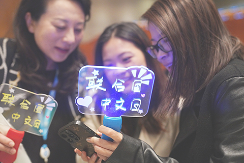 聯合國中文日慶祝活動在紐約聯合國總部舉行 2026-04-15 03:30:00 ◎ 四月十三日,在位於紐約的聯合國總部,人們參加「翰墨和鳴萃章同賦」為主題的聯合國中文日慶祝活動。當日,以「翰墨和鳴萃章同賦」為主題的聯合國中文日慶祝活動在位於紐約的聯合國總部舉行。(新華社記者張鳳國 攝)