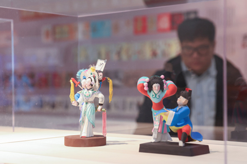 ◎ 四月二十二日,第五屆嘉德國際藝術圖書展暨文創嘉年華在位於北京的嘉德藝術中心開幕。圖為在「漢聲風格」藏書文化特展區,觀眾參觀「惠山泥人」。台灣《漢聲》雜誌創辦於二十世紀七十年代,通過鏡頭和文字傳播中國的傳統民間文化,出版了民間文化專著、《漢聲中國童話》等。(中新社記者 楊郁然 攝)
