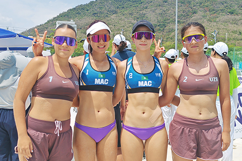 【特訊】第六屆亞洲沙灘運動會沙灘排球項目,澳門女子沙灘排球代表隊「安心」組合梁安盈/羅詠心周六(25日)直落兩局擊敗烏茲別克組合,小組賽兩勝一負以次名晉級十六強;林樂思/甄語嫣亦在小組賽最後一戰零封蒙古組合,打開勝利之門。