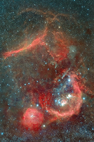 雖然獵戶座是冬季星空皇者,但今次在照片中獵戶座只是更大範圍的超巨大氣泡結構的一部份而已。這個巨大、跨度達1,200光年的巨大氣泡是多個超新星爆炸殘骸的重疊,而當中的獵戶座也有恆星形成的區域,在難以想像的巨大空間之中集生與死的界限,一直是令我著迷的地方。◇