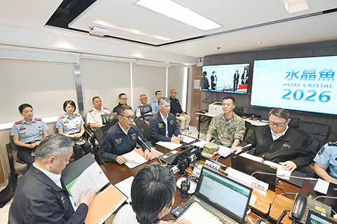 【特訊】為進一步落實現代民防模式,提升本澳應對颱風的應急處理能力,民防架構於四月廿五日舉行代號「水晶魚二0二六」民防颱風演習。演習由保安司司長陳子勁主持,警察總局局長梁文昌、澳門海關關長何浩瀚聯同各民防架構、學校、社團機構以及市民共同參與,目的是透過恆常的民防颱風演習,持續檢視「民防總計劃」及各項專項應變計劃的實施效果及可操作性,同時強化民防架構成員間的溝通、協調及聯動能力,並藉著社會的共同參與,切實提升本澳整體防災減災能力。是次演習亦邀請了中國人民解放軍駐澳門部隊劉歡副參謀長出席,評估本澳防災救災各項工作環節成效並提供意見。
