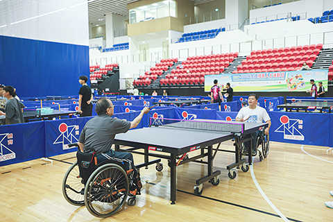 殘疾人士乒乓球賽率先於當天上午在望廈體育中心一樓籃球場舉行。參賽者全力以赴,在球桌上切磋較量,展現堅毅不屈的體育精神。現場觀眾不時報以熱烈掌聲,為選手加油打氣,氣氛溫馨鼓舞。